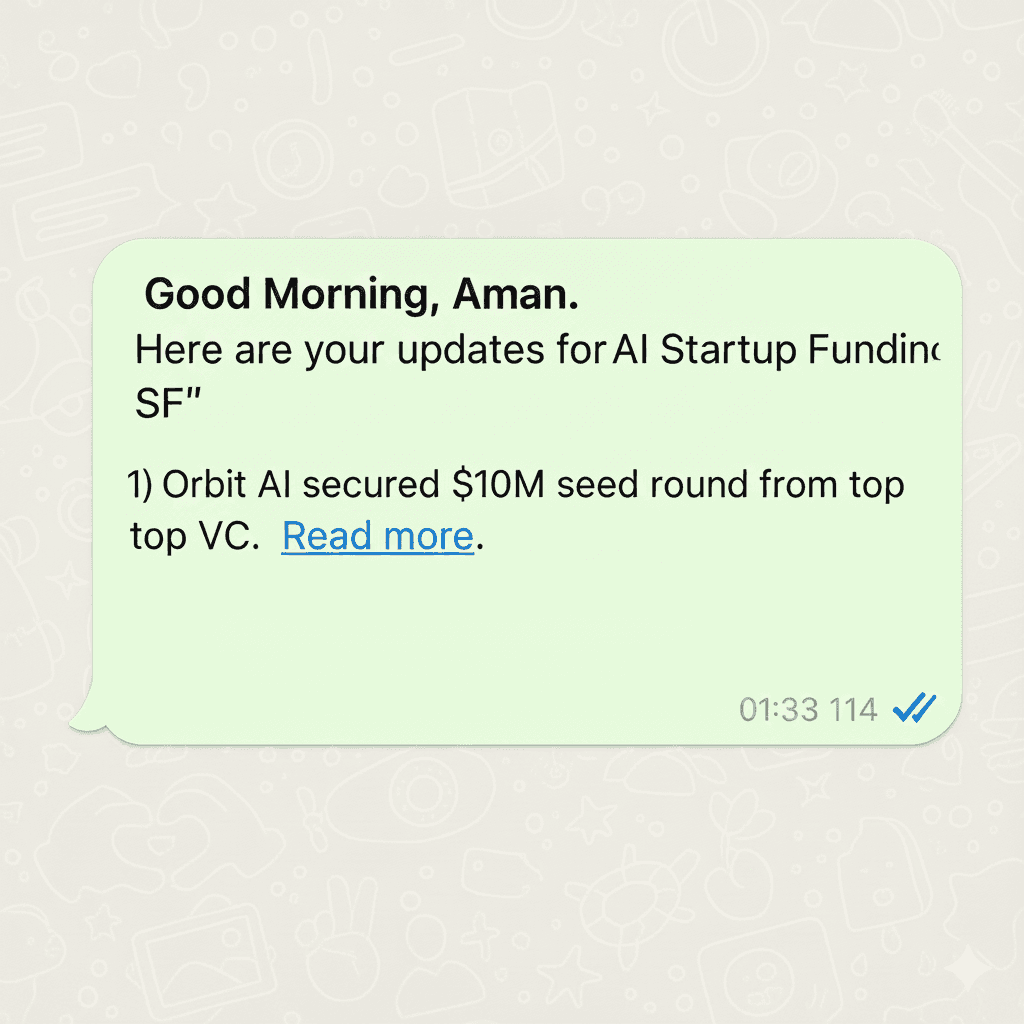 Orbit delivers your morning brief on WhatsApp. Everything relevant, nothing extra.